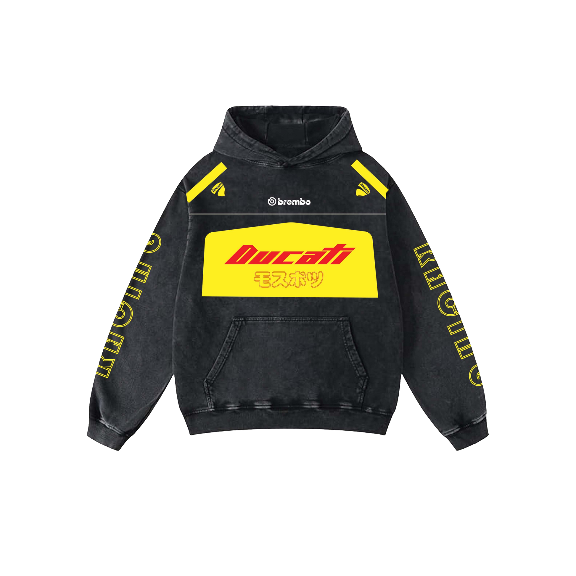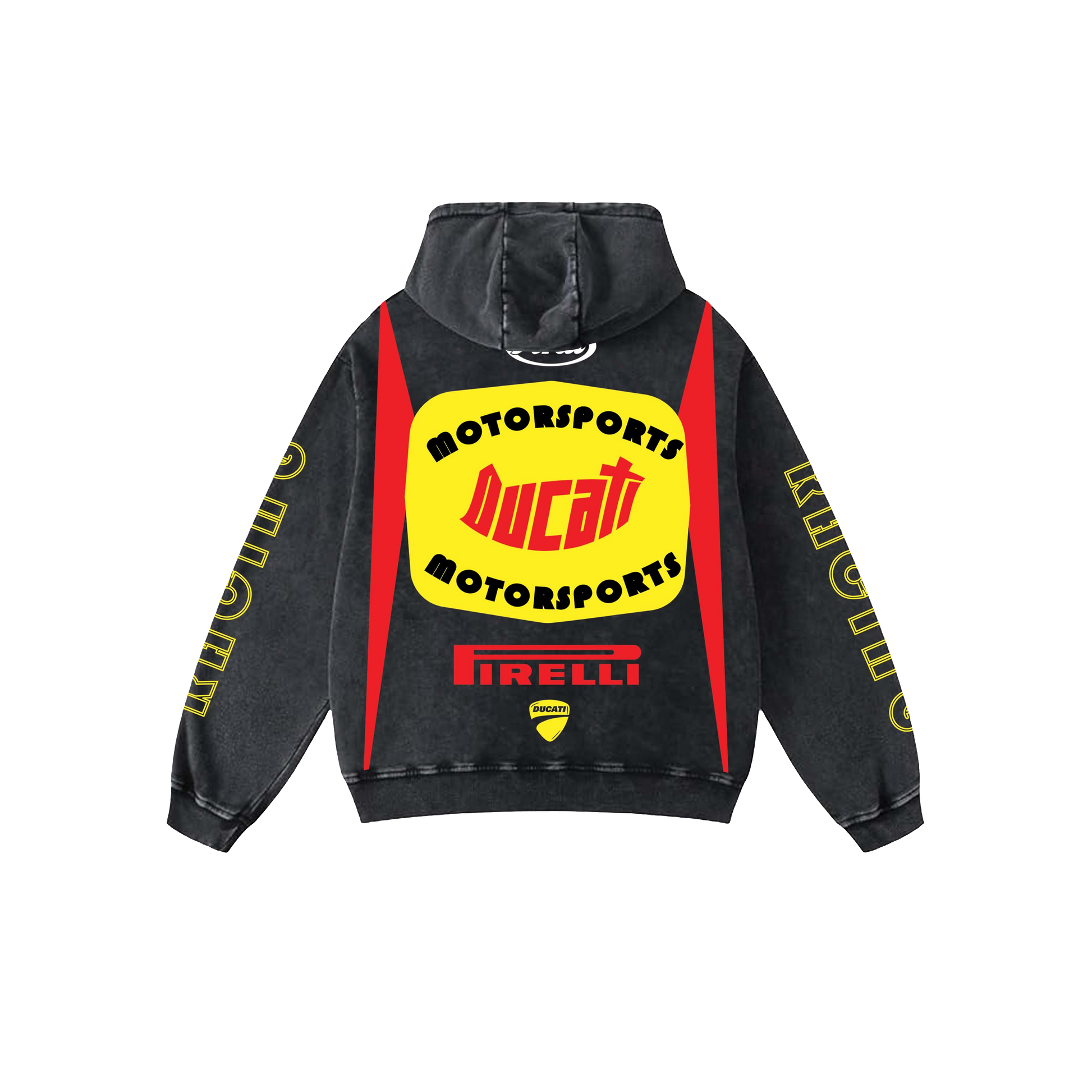 The Ducati Acid Wash Oversized Hoodie isn’t just apparel — it’s a symbol of adrenaline, precision, and fearless living.