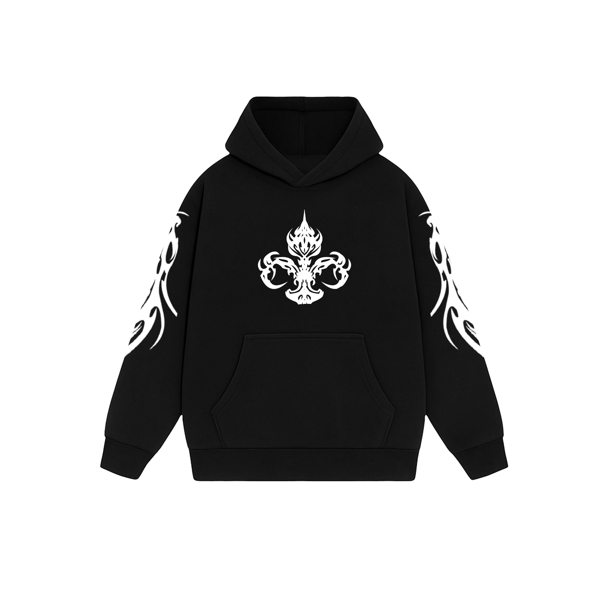 Crafted from heavyweight premium cotton, this hoodie delivers both structure and comfort while commanding attention with its high-contrast artwork. The sleeve graphics extend the wings’ flow, giving the silhouette a sense of motion — as if the divine itself is breaking free from form.