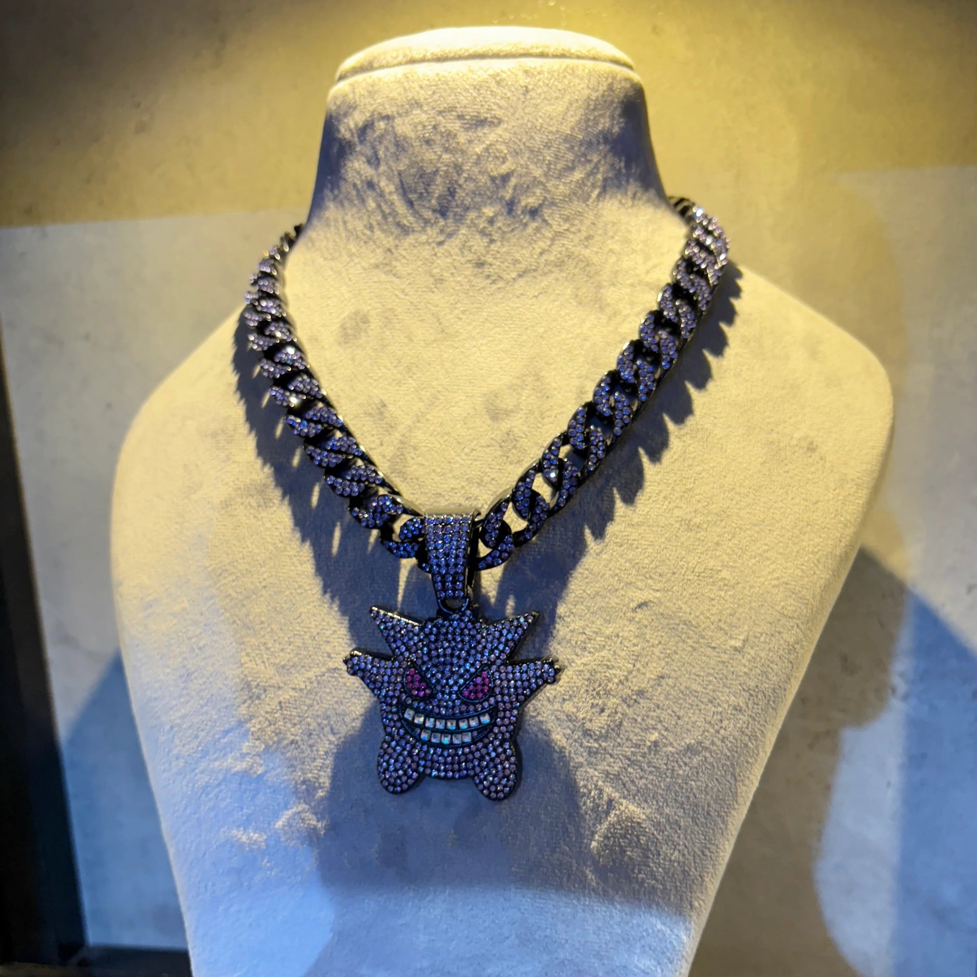 Pendant: Gengar-inspired design, fully iced with precision-set stones for maximum shine.