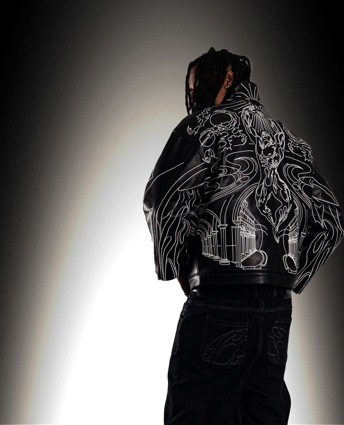 The structured silhouette is balanced with fluid line art that wraps around the body, turning every angle into a visual story. Bold, elevated, and built to command presence.